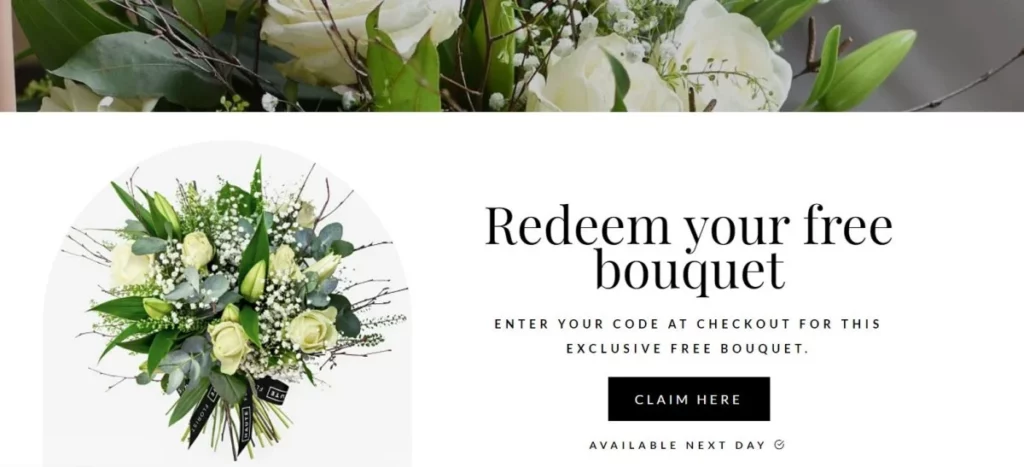 These were purchased in bulk from the florist by Element, on behalf of Armani, for a significantly reduced unit cost, and each customer was provided with a unique redemption code to claim their free bouquet.